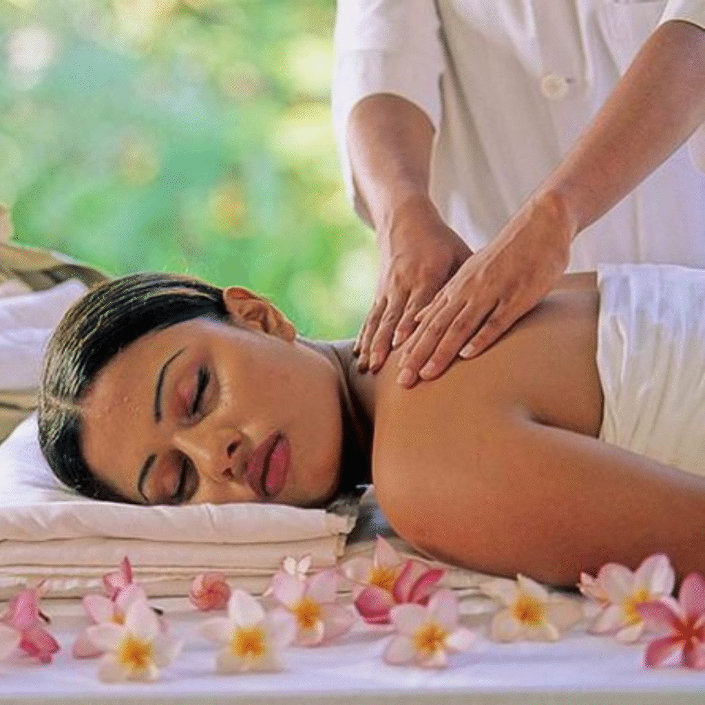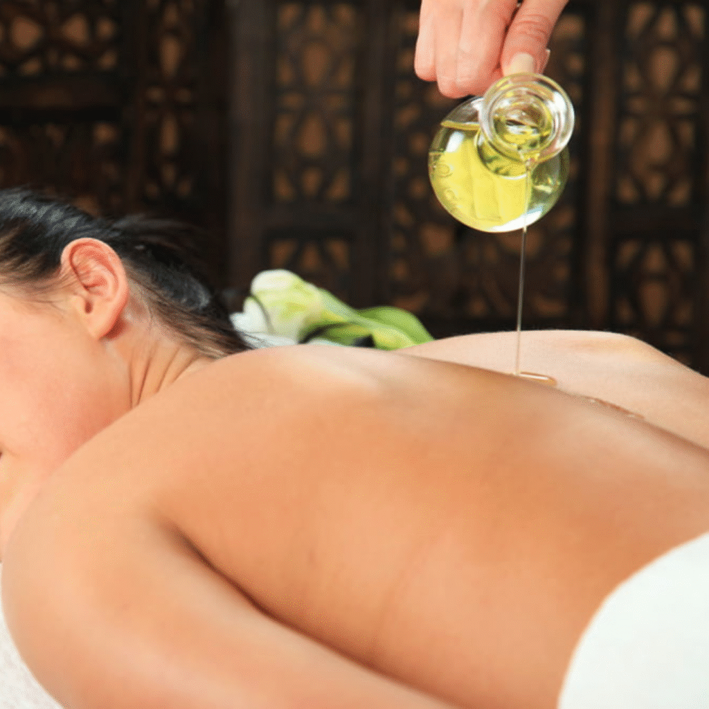 Ayurvedic massage is a holistic treatment that uses warm oils, gentle strokes, and herbal remedies to balance the body’s doshas (energies). It detoxifies, rejuvenates, and nourishes the skin, muscles, and mind, promoting overall well-being and inner harmony. A natural way to relax and revitalize!